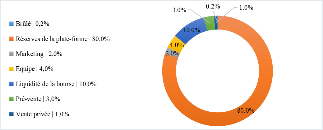 | Réserves de la plate-forme | 150M bloqués dans le déploiement du contrat et 40M bloqués par Trustswap (tierce partie) |