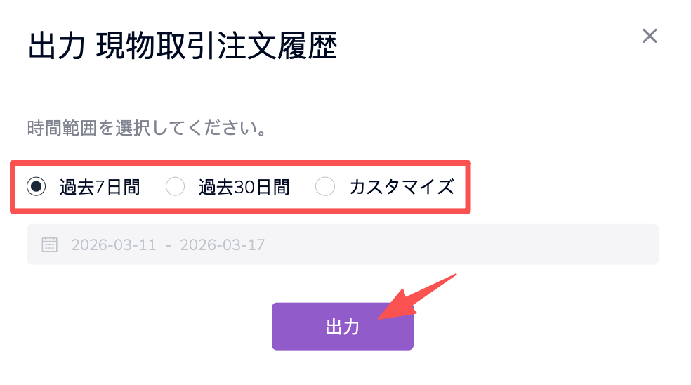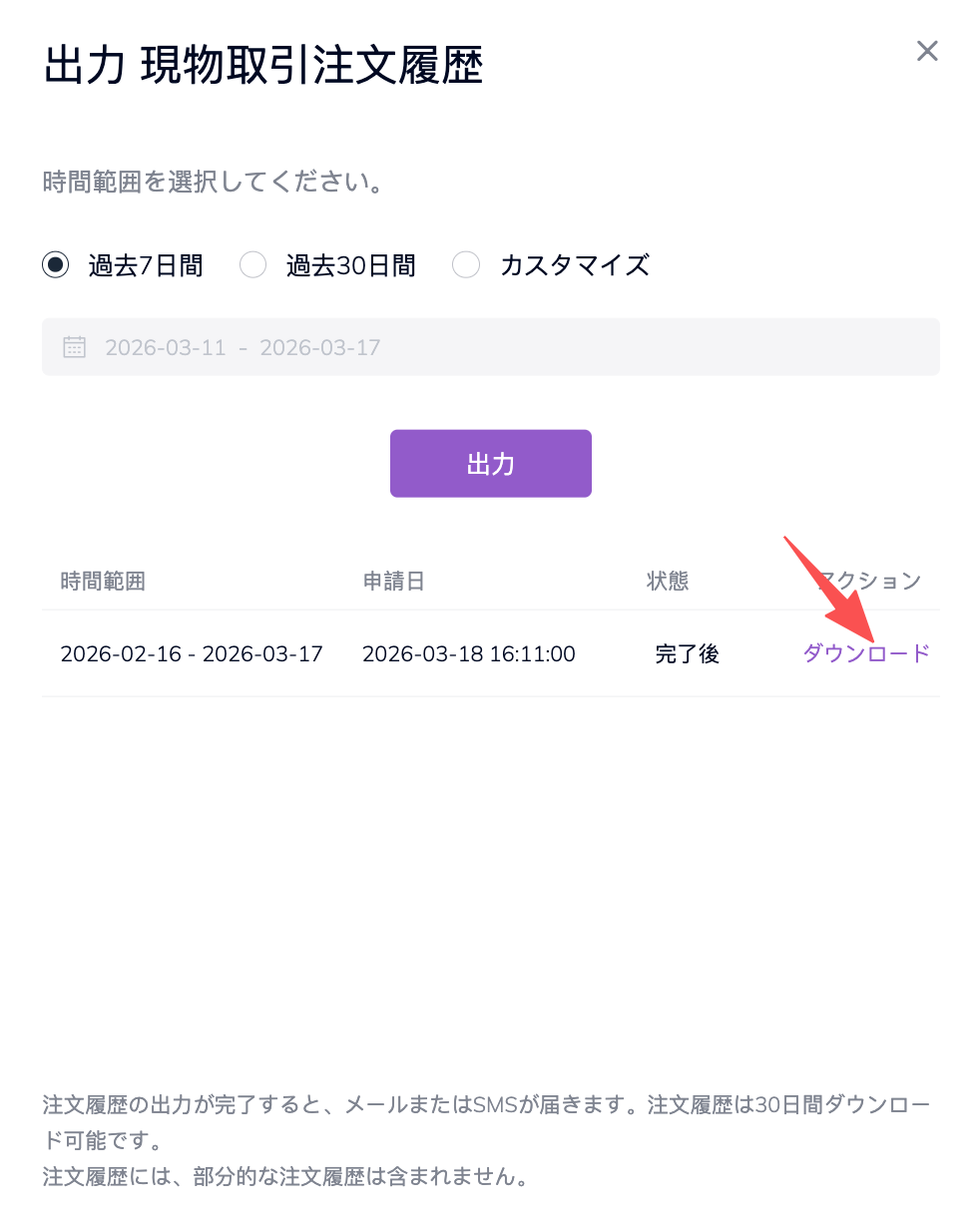 2.     エクスポートされる注文履歴には、一部約定となった注文は含まれません。