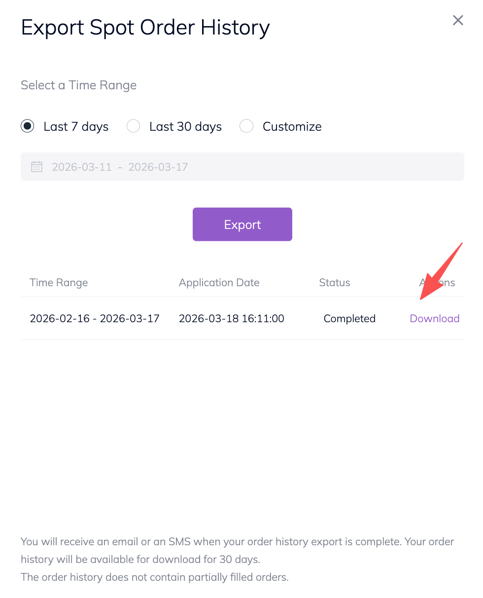 2. The order history to be exported will not contain partially filled orders.