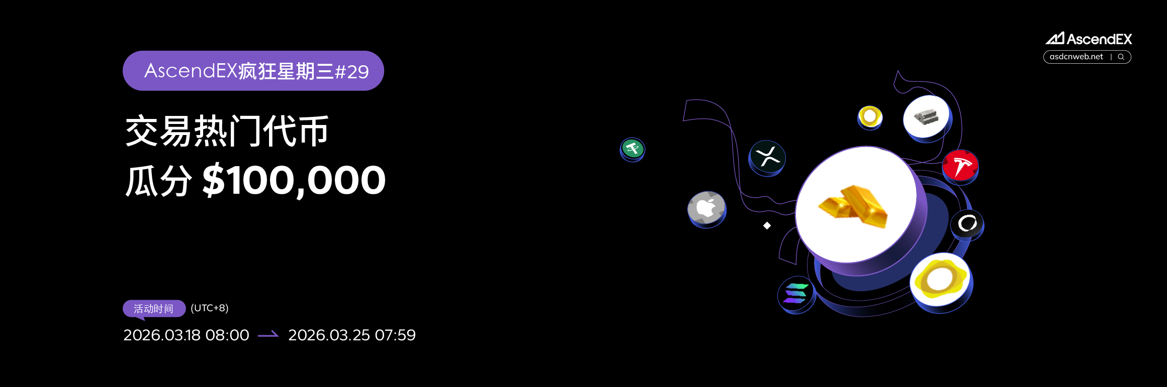 活动期间,进行 XAUUSDT, XAGUSDT, PAXGUSDT, TSLAXUSDT 或 AAPLXUSDT 任意币对合约交易,即可获得 $5-$100 随机奖励。交易金额越高,获得高额奖励概率越高!