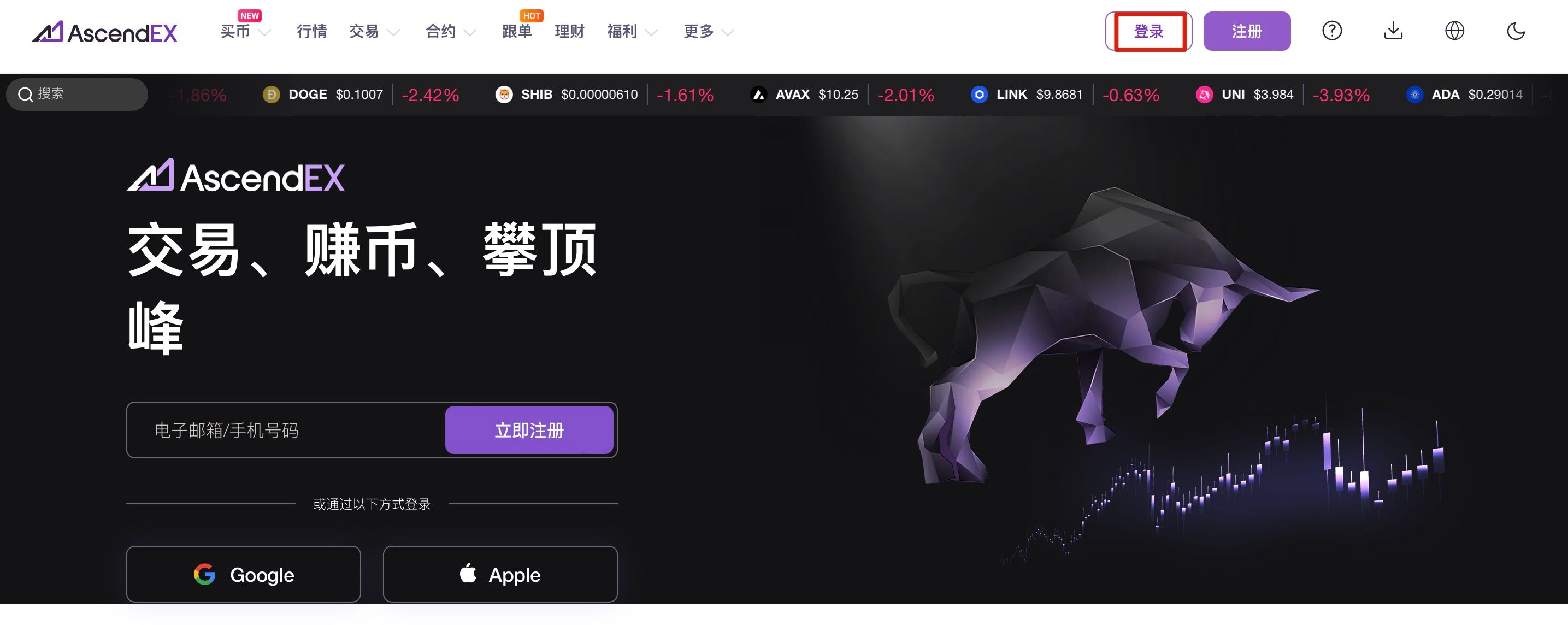 刷新1. 进入AscendEX官网,点击网页右上角的【登录】;