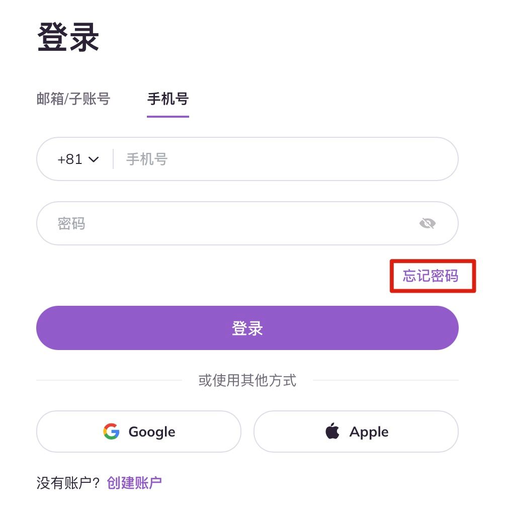 2. 点击【忘记密码】;
