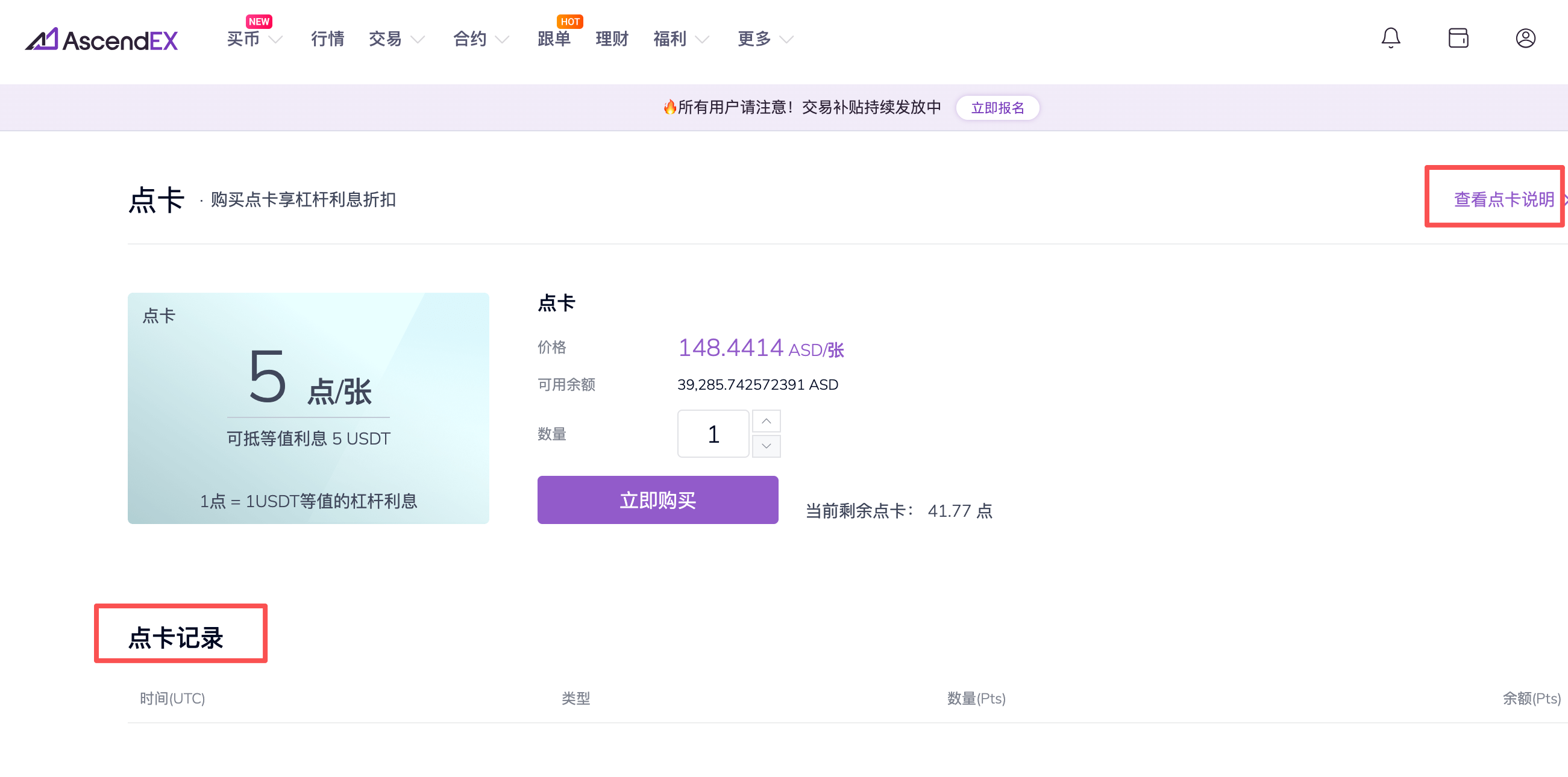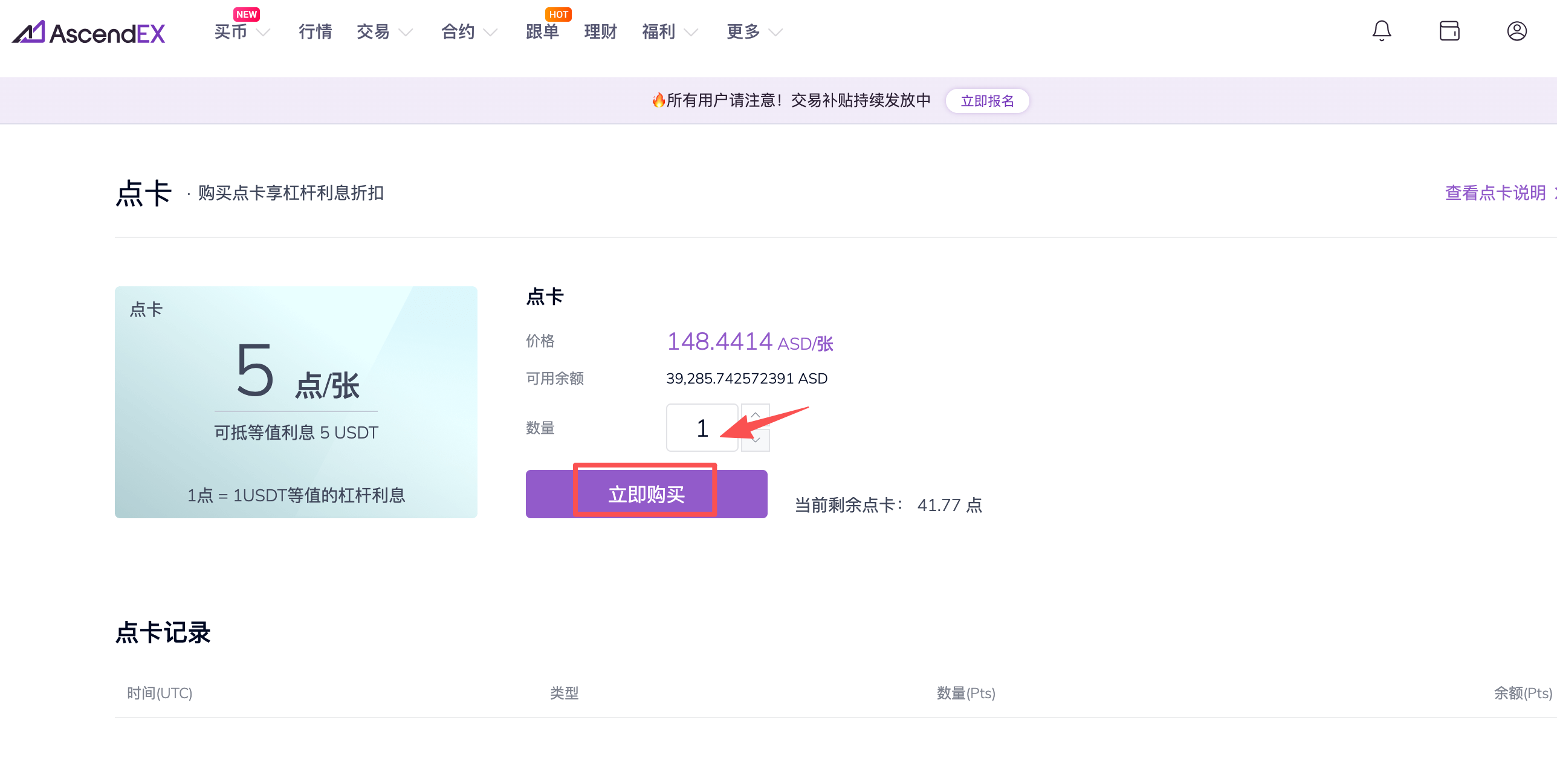 如何在顶峰AscendEX购买点卡?