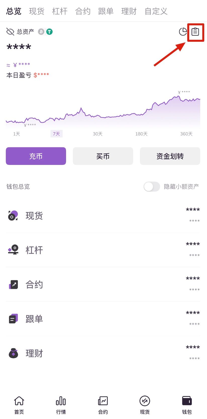 2.进入用户资产页面,点击充提记录图标。