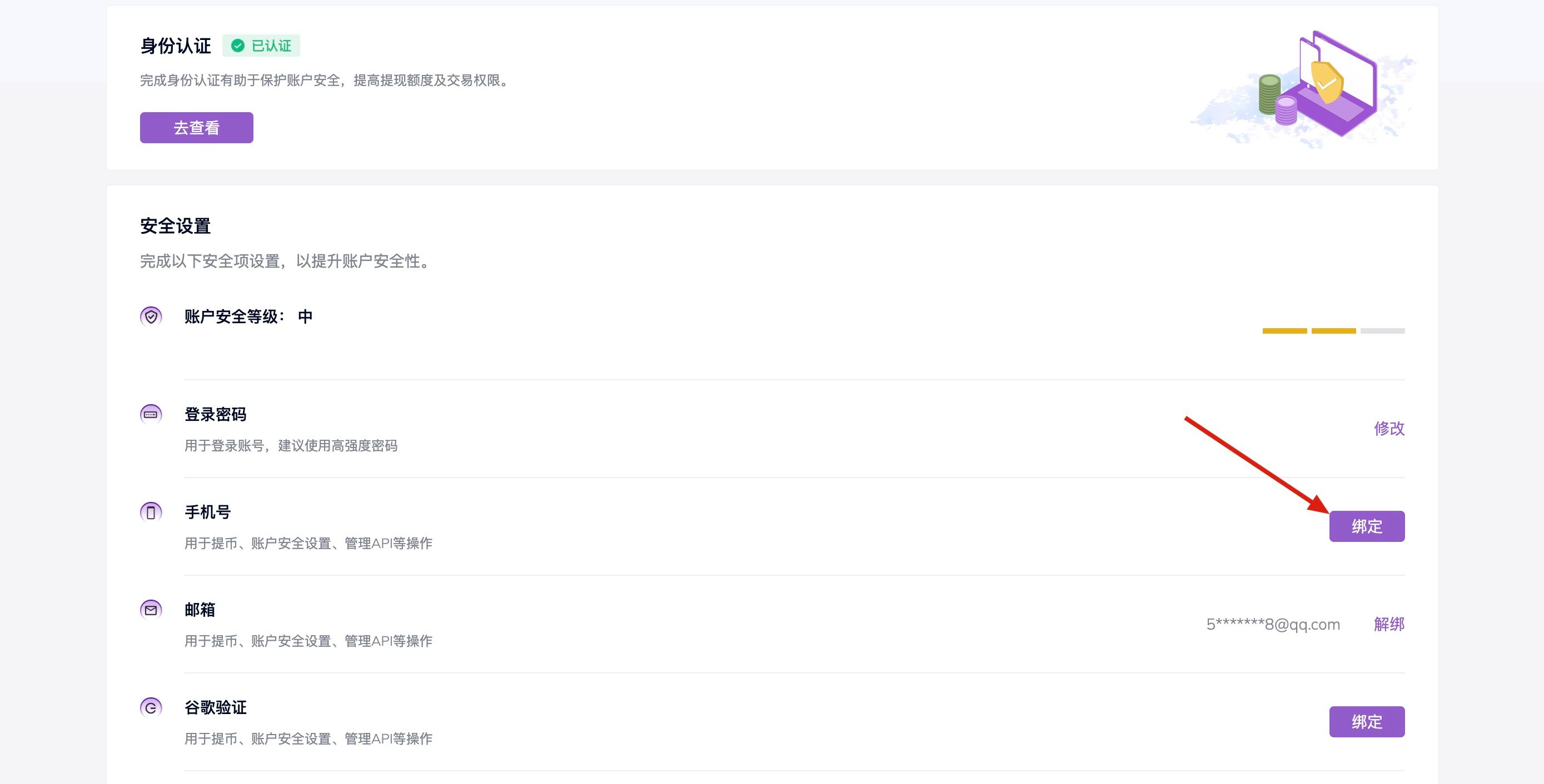 5.点击弹窗返回按钮,即可返回官网首页重新登录,进入账户安全页面绑定新手机号。