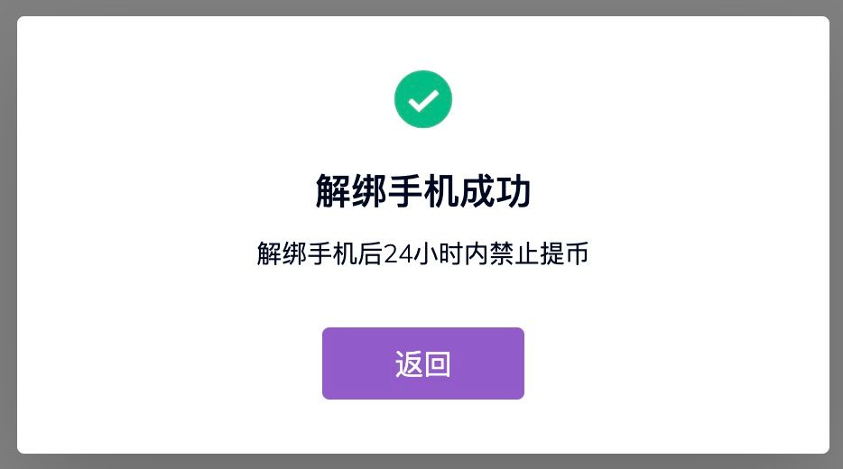 4.页面跳出弹窗提示,手机号即解绑成功。