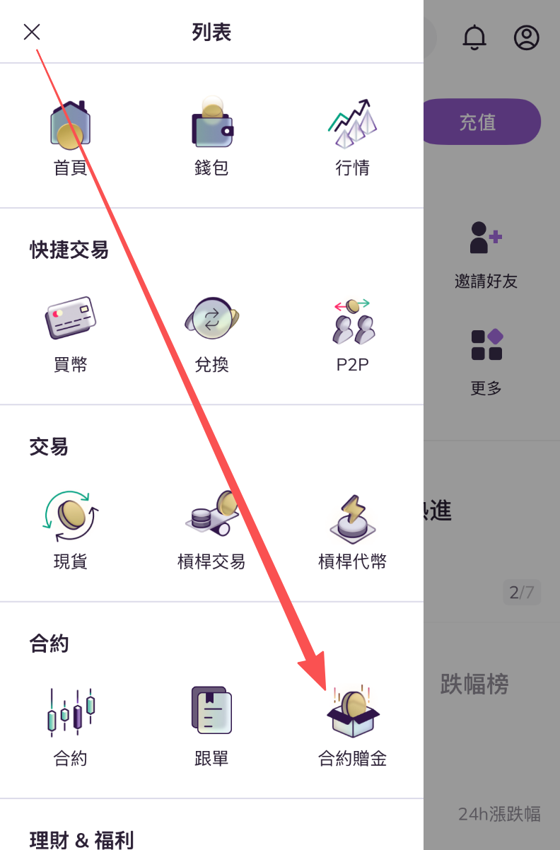 方式1. 進入【合約贈金】-【我的福利】可查看虧損抵扣金的剩余數量。